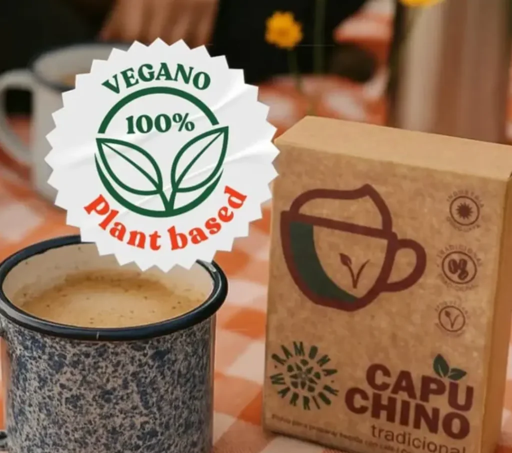 Agustina Amorin Primer Capuchino Instantáneo a Base de Leche Vegetal Apto celiac@s y diabétic@s Packaging Reciclable Actitud. Amor. Respe