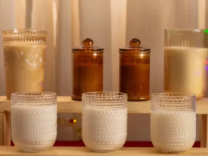 Velas de soja elaboradas con cera vegetal 100 % natural, perfumadas y hechas a mano en vidrio reutilizable. Luz y Aroma